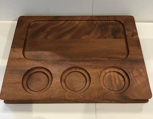 Planche de service en noyer avec rivière en résine rouge et bleue