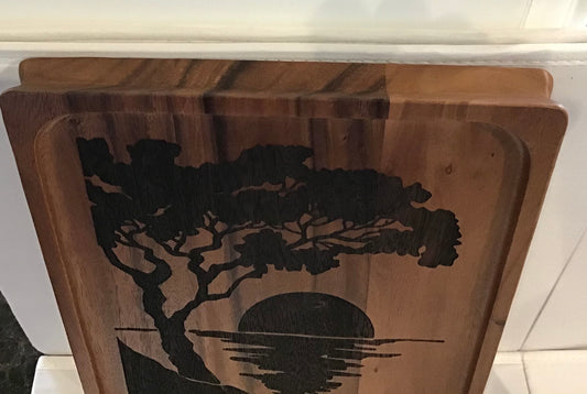 Grande planche de bois rectangulaire double face avec motif coucher de soleil